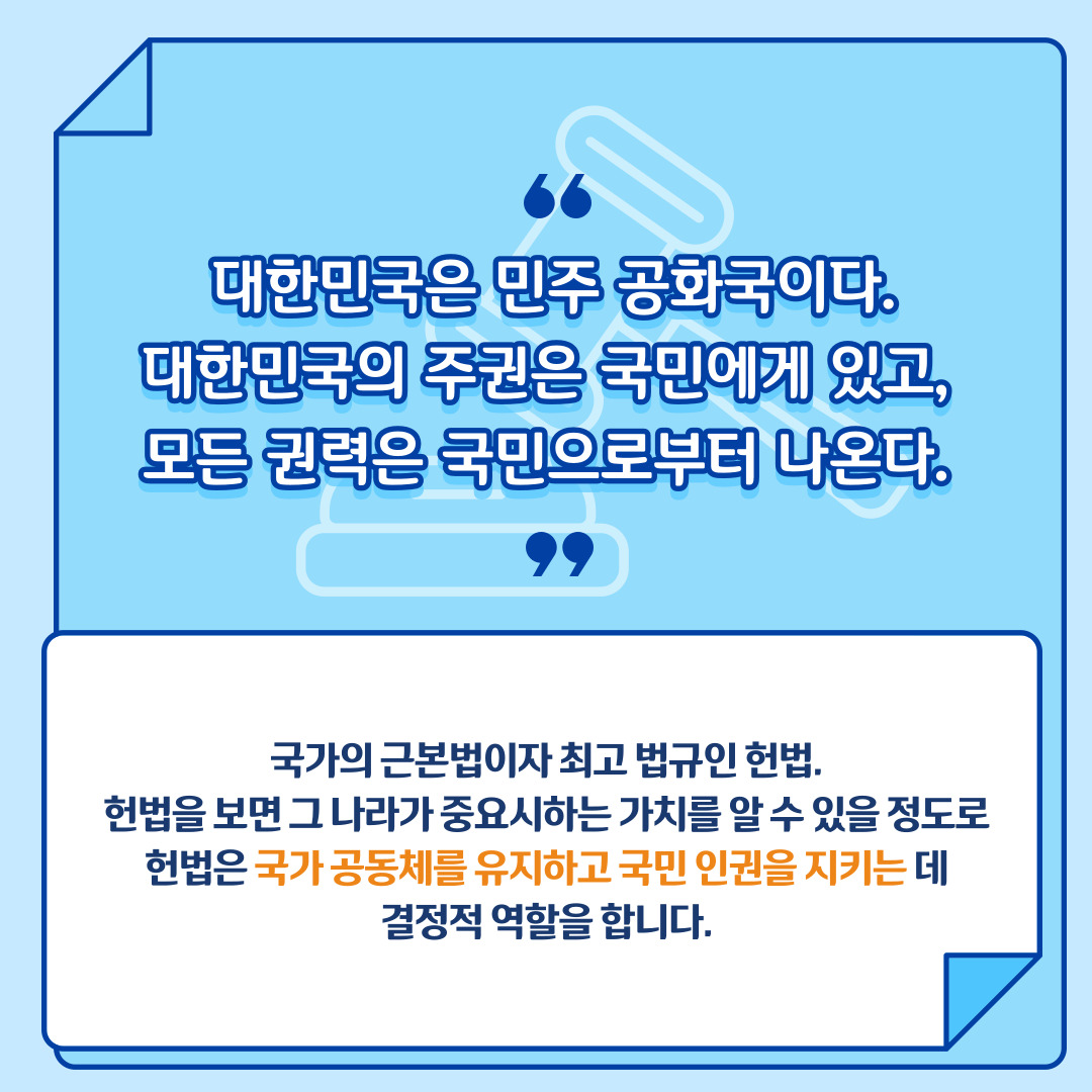헌법 제정의 의미: 한국 제헌절은 대한민국 헌법의 제정을 기리는 의미가 있습니다. 헌법은 국가와 국민의 기본 법으로서 국가의 원칙과 가치를 정의하고, 국민의 권리와 의무를 보장합니다. 제헌절은 이러한 헌법의 중요성과 역할을 강조하여, 헌법이 한국 사회와 정치의 기반이 되는 것을 기리고 기억합니다.