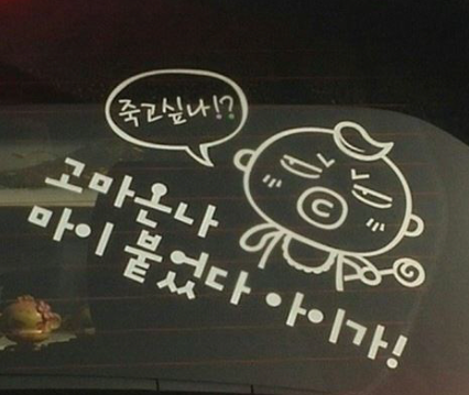 일반 무난한 스티커는 괜찮은데, 위 사진처럼 저런 스티커는 다른 사람들이 봤을 때는 불편한 감이 있을 수 있습니다.