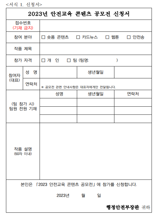 오늘은 다가올 8월 행정안전부에서 주최한 안전교육 콘텐츠 공모전에 알아보도록 할까요?