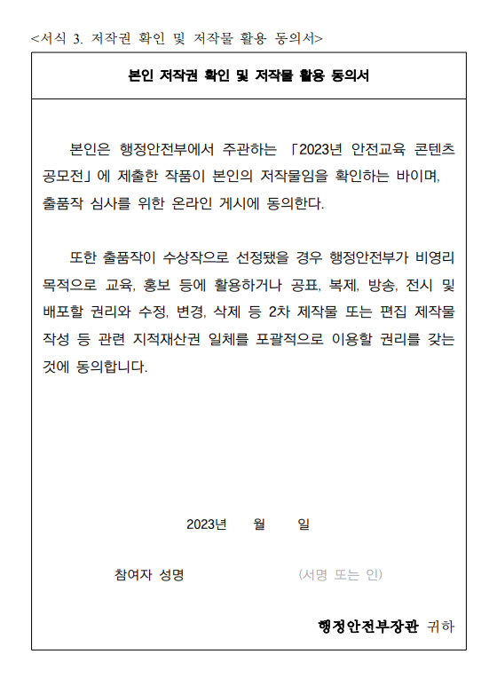 - 출품작의 표절이나 도용 등과 관련한 법적 분쟁 발생 시 책임은 응모자에게 귀속